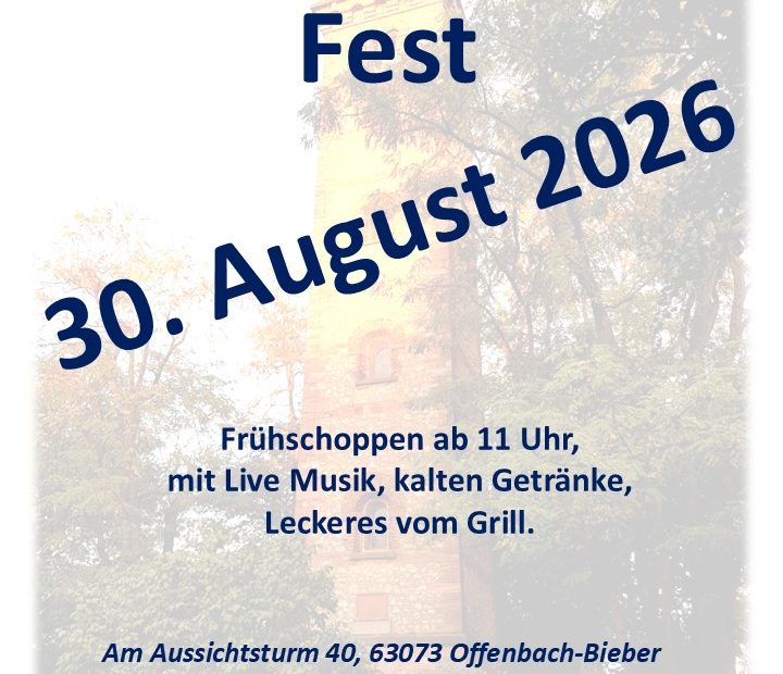 Unter schattenspendenden Rubinien haben die Patenvereine des Bieberer Aussichtsturms, der Musikverein Eintracht und die Offenbacher 03er, wieder Bänke aufgestellt, Getränkestände und Grillbude hergerichtet, um ihr traditionelles Turmfest zu feiern.